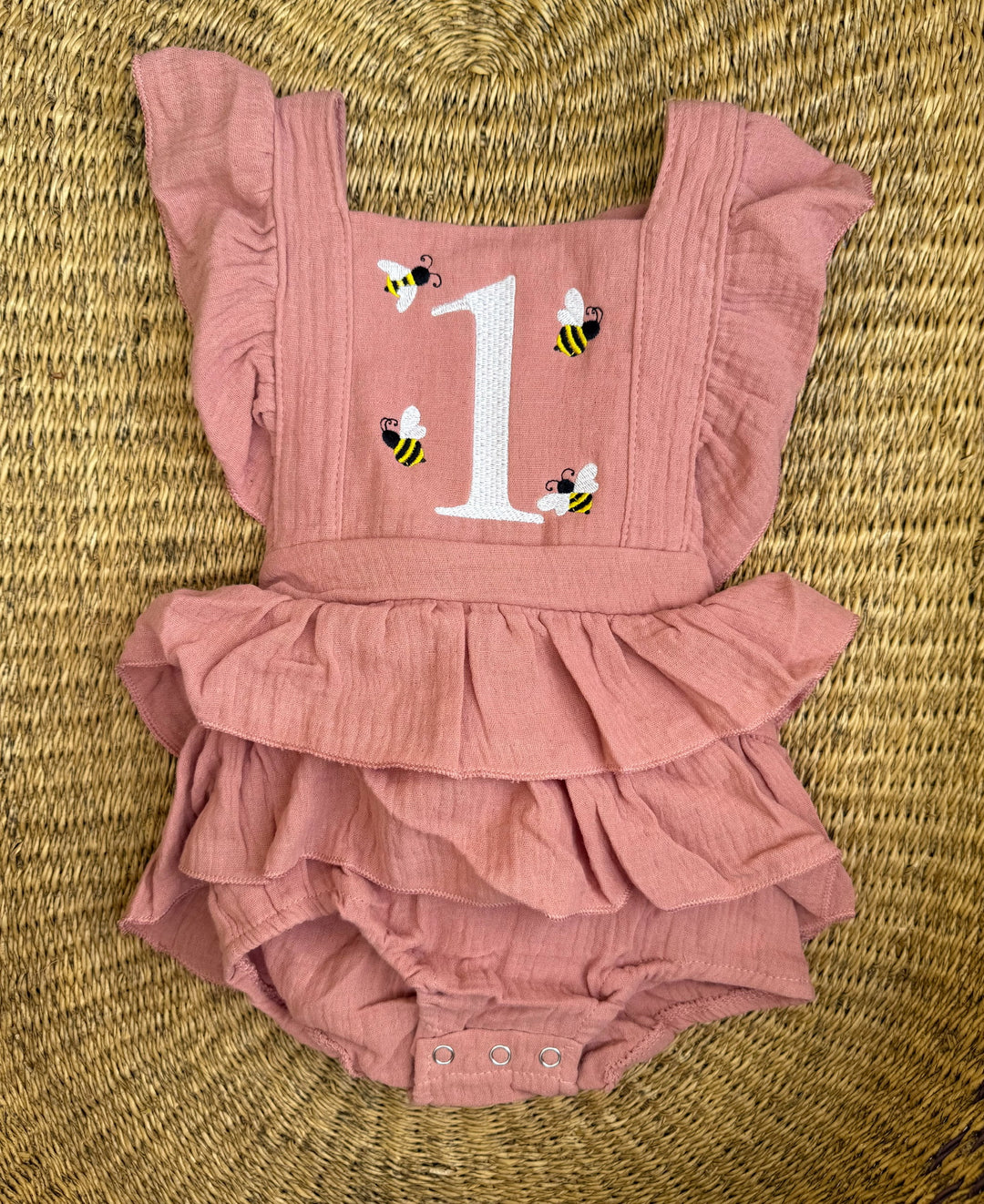 Buzzing Bee One Romper - Girls First Birthday Outfit
