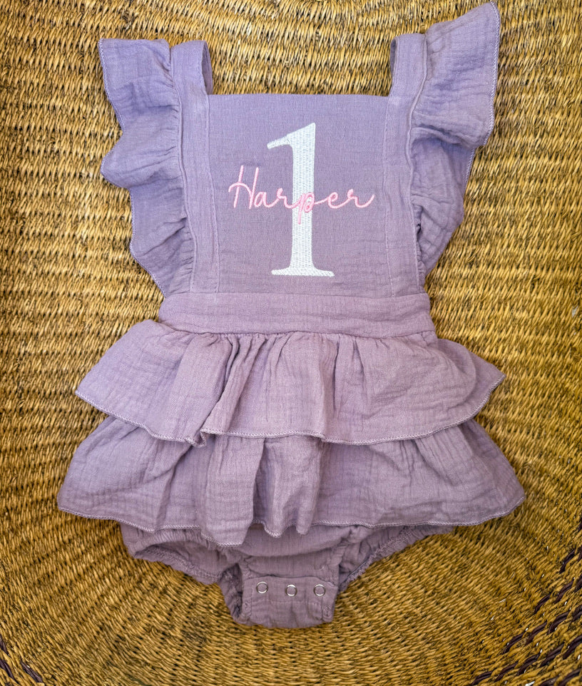 Name & One Romper - Girls First Birthday Outfit