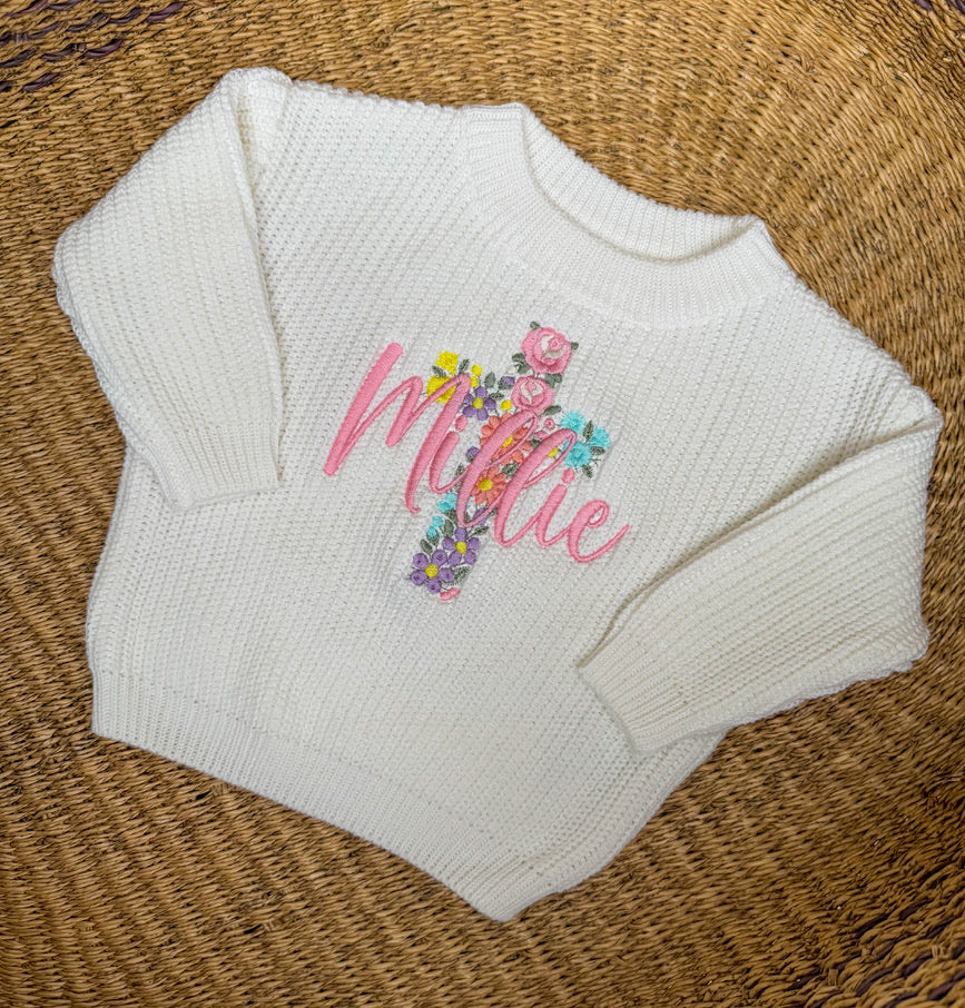 Floral Cross Sweater - Girls Personalized Outfit