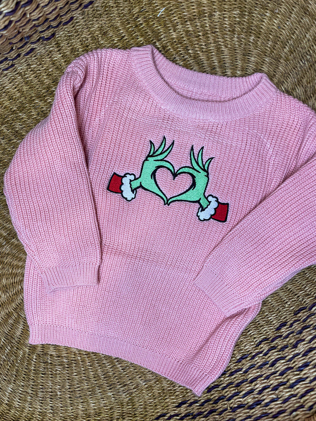 Grinch Heart Hands Sweater - Kids Christmas Outfit