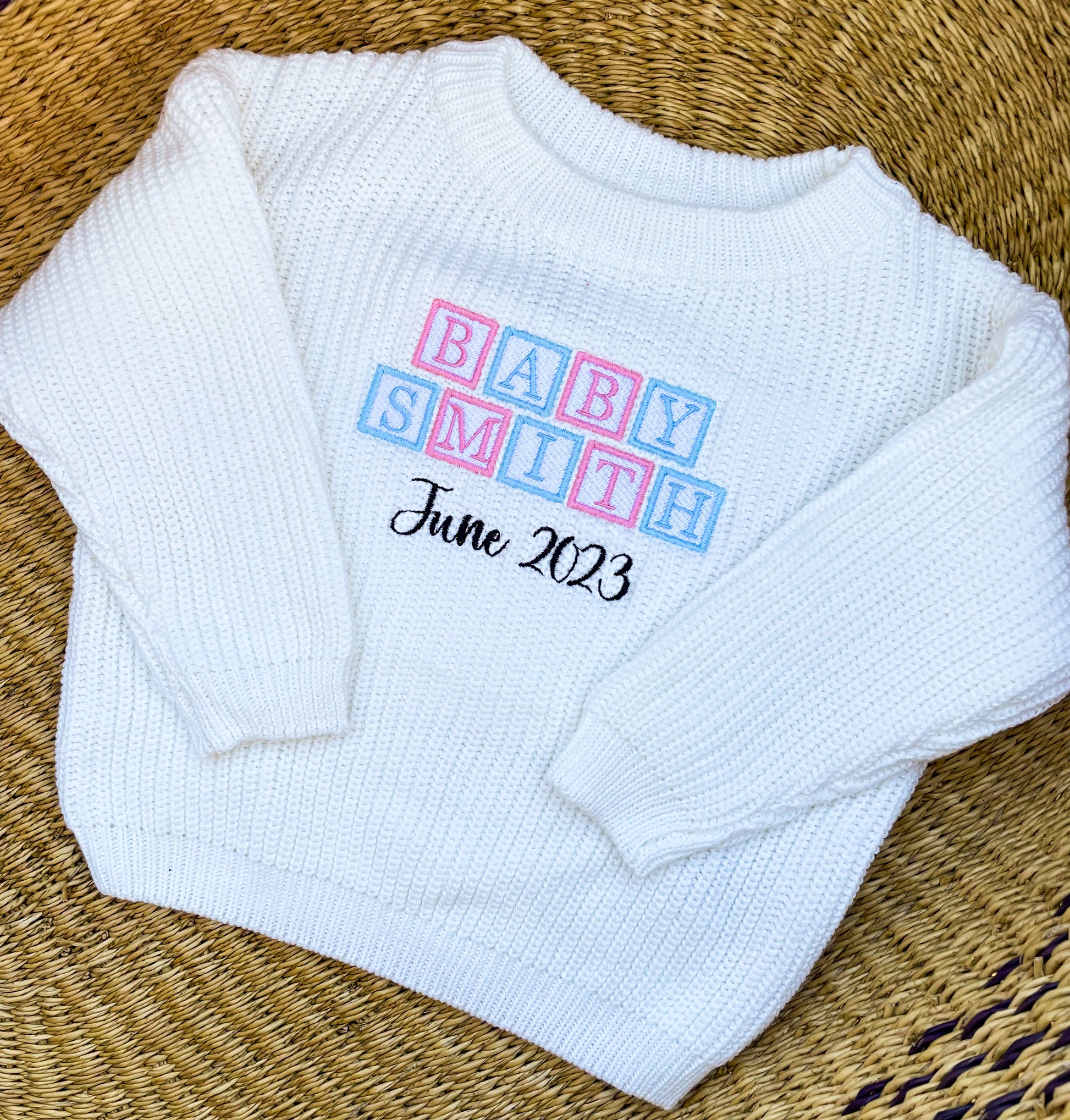 Add a cozy, personalized touch to your special moment — the perfect sweater for announcing the newest addition to your family!