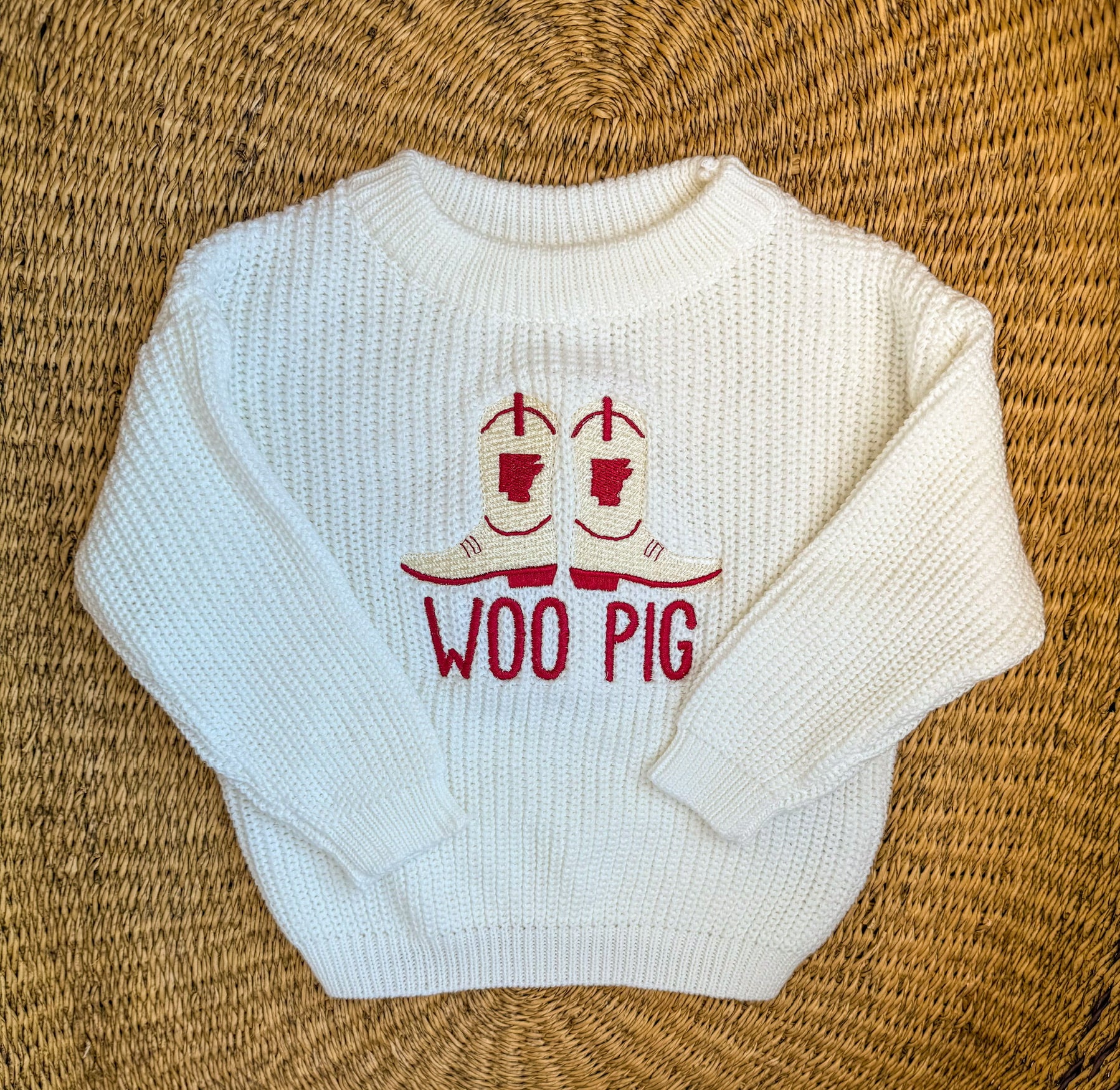 🐗 Arkansas Woo Pig Cowboy Boot Sweater – Kids Game Day Outfit